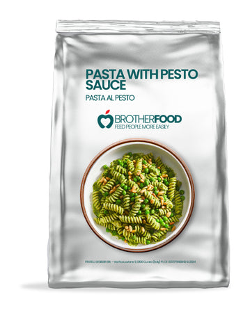 Pasta (50%) (durum wheat semolina, water), Pesto sauce (50%) [water, dried basil, vegetable oil (sunflower oil), cream, corn starch, cheese powder (1.5%), garllc. salt].